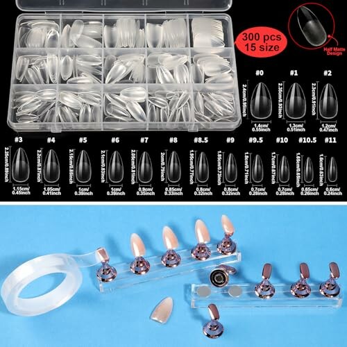 - The kit includes 15 sizes of almond nail tips and a double-sided tape for easy painting.